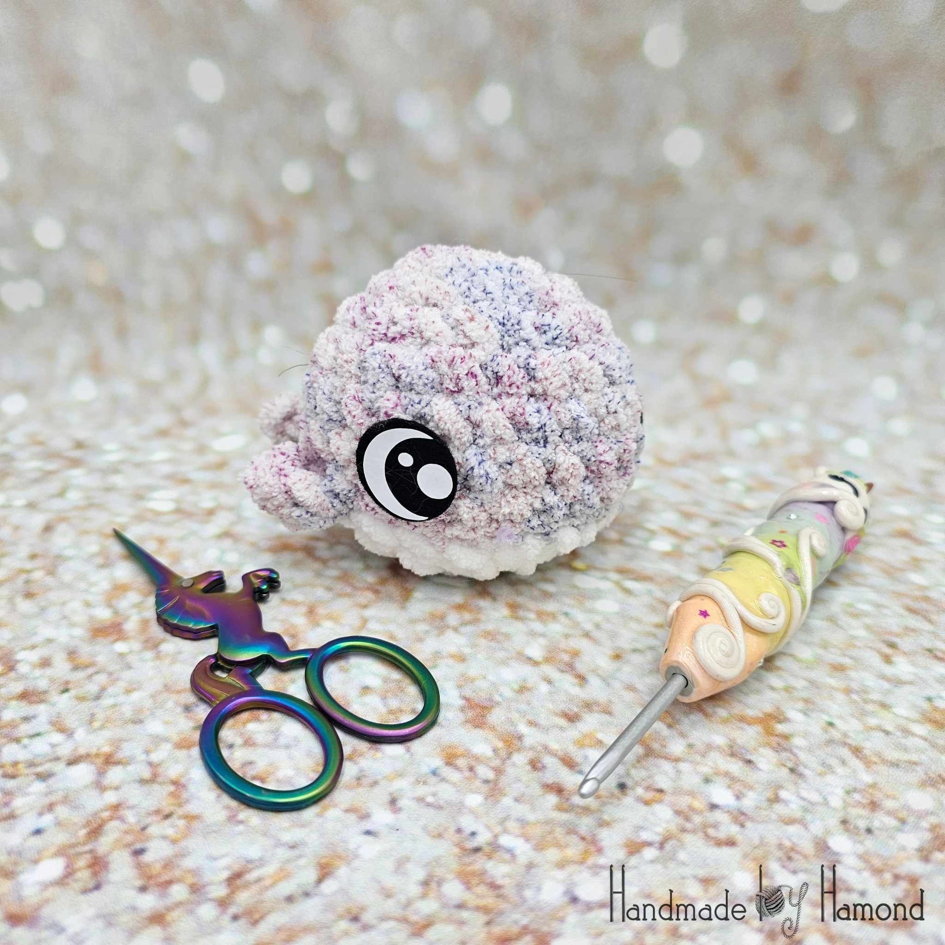 These adorable baby whales fit in the palm of your hand! They are made with extra soft and fluffy blanket yarn. A perfect little companion for all ages.